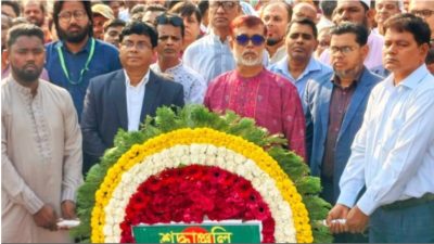 স্বাধীনতা দিবসে বিজয় স্তম্ভে জেলা পুলিশের পুষ্পস্তবক অর্পণ