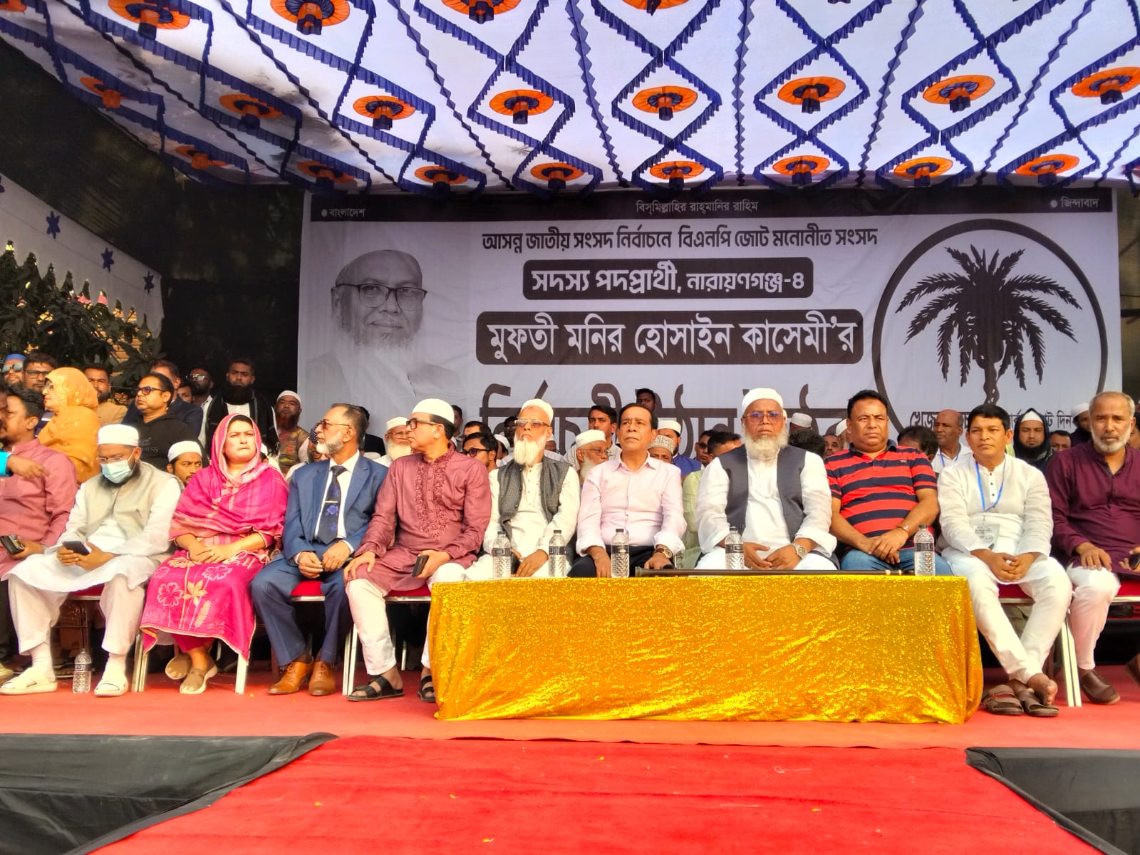 মুফতি মনির হোসাইন কাসেমী আরও বলেন, “এবারের নির্বাচন ফতুল্লাবাসীর জন্য একটি পরীক্ষা। এই পরীক্ষায় ফতুল্লার হিন্দু, মুসলমান, বৌদ্ধ ও খ্রিস্টান সবাইকে নিজেদের ভাগ্য নিজেরাই নির্ধারণ করতে হবে। জলাবদ্ধতা থাকবে কিনা, সন্ত্রাস ও চাঁদাবাজদের কবল থেকে মুক্তি মিলবে কিনা, বিদ্যুৎ-গ্যাস ঠিকভাবে আসবে কিনা এবং নাগরিক সুবিধা নিশ্চিত হবে কিনা—এসব বিষয়ে ফতুল্লাবাসীকেই সিদ্ধান্ত নিতে হবে। তাই এই পরীক্ষায় আমাদের জিততে হবে, অন্য কোনো অপশন নেই।”