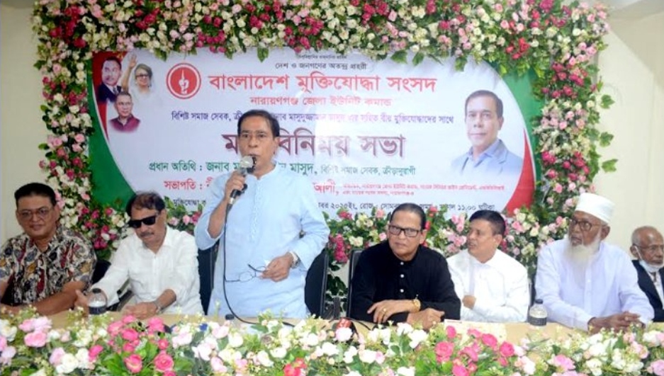 জেলা মুক্তিযোদ্ধা কমপ্লেক্সে বীর মুক্তিযোদ্ধাদের সঙ্গে এক মতবিনিময় সভায় মাসুদুজ্জামান মাসুদ এই মন্তব্য করেন। সভার সভাপতিত্ব করেন বীর মুক্তিযোদ্ধা এবং বাংলাদেশ মুক্তিযোদ্ধা সংসদ, নারায়ণগঞ্জ জেলা ইউনিট কমান্ডের আহ্বায়ক ও বিএনপির সাবেক সংসদ সদস্য (নারায়ণগঞ্জ-৪) মোহাম্মদ আলী।