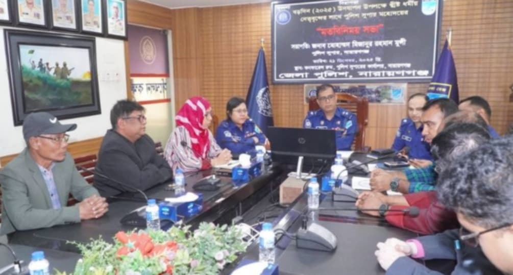 রোববার (২১ ডিসেম্বর) নারায়ণগঞ্জ জেলা পুলিশ সুপারের কার্যালয়ে এ মতবিনিময় সভা অনুষ্ঠিত হয়। সভায় সভাপতিত্ব করেন নারায়ণগঞ্জ জেলার পুলিশ সুপার মোহাম্মদ মিজানুর রহমান মুন্সী।