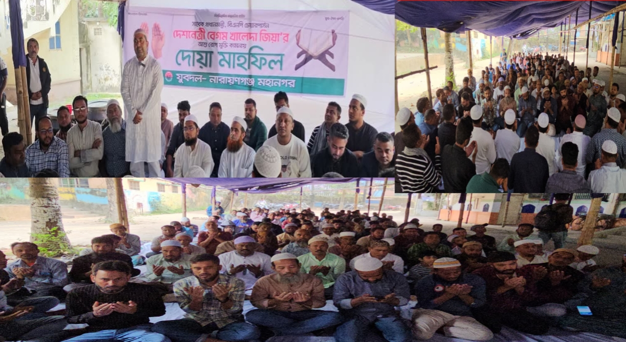 গণতন্ত্রের 'মা' বিএনপির চেয়ারপার্সন তিনবারের সাবেক সফল প্রধানমন্ত্রী আপোষহীন দেশনেত্রী বেগম খালেদা জিয়ার রোগমুক্তি ও সুস্থতা কামনায় নারায়ণগঞ্জ মহানগর যুবদলের উদ্যোগে দোয়া মাহফিল এবং খাবার বিতরণ করা হয়েছে।