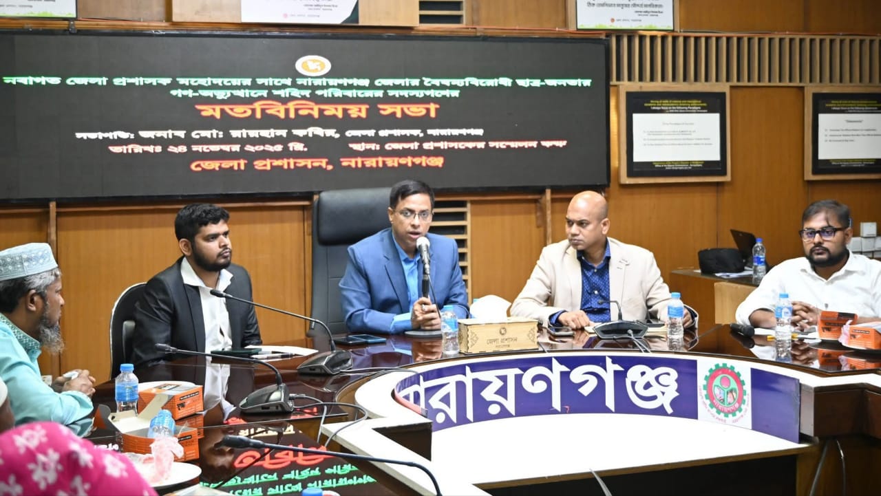 নারায়ণগঞ্জের নবাগত জেলা প্রশাসক মোঃ রায়হান কবির এর সাথে জেলার বৈষম্য বিরোধী ছাত্র জনতার গন-অভ্যূত্থানে শহীদ পরিবারের সদস্যদের মতবিনিময় সভা অনুষ্ঠিত হয়।