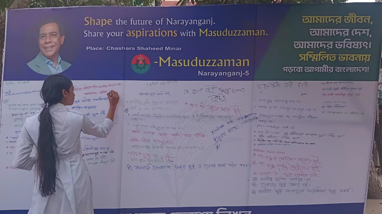 জনতার প্রত্যাশার ক্যানভাসে জনসাধারণের মতামত নিচ্ছেন মাসুদুজ্জামান