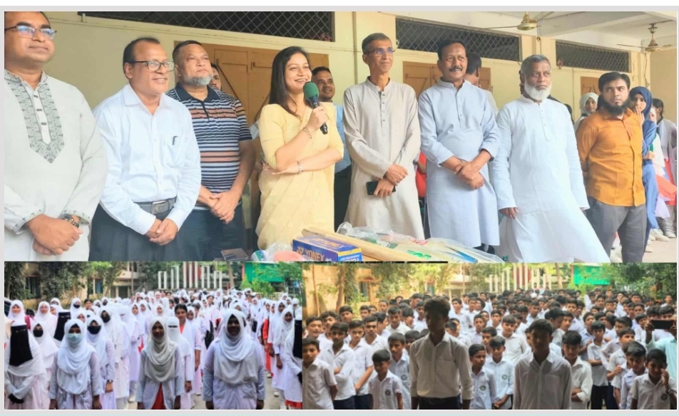 দেলপাড়া উচ্চ বিদ্যালয়ের ছাত্রছাত্রীদের ক্রীড়া সামগ্রী উপহার দিয়েছেন নারায়ণগঞ্জ সদর উপজেলা নির্বাহী কর্মকর্তা ও স্কুল ম্যানেজিং কমিটির সভাপতি তাছলিমা শিরিন।