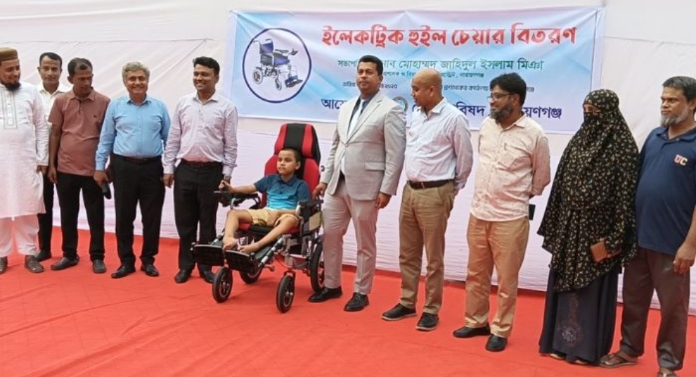 নারায়ণগঞ্জের মানবিক ডিসির সহায়তায় শারীরিক প্রতিবন্ধী মাহিন পেলো ইলেকট্রিক হুইল চেয়ার
