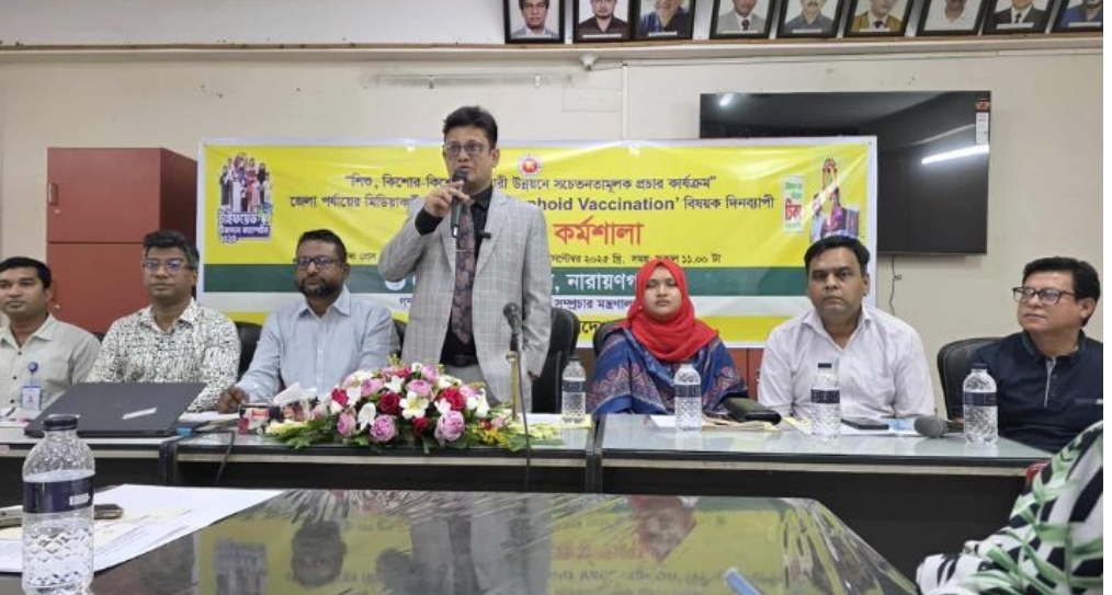 নারায়ণগঞ্জের আট লাখ দশ হাজার শিশুকে টায়ফয়েড টিকা দেয়া হবে বলে জানিয়েছেন জেলা সিভিল সার্জন ডা. এ এফ এম মুশিউর রহমান। বুধবার (২৪ সেপ্টেম্বর) বেলা ১২টায় নারায়ণগঞ্জ প্রেসক্লাবে জেলা তথ্য অফিসের উদ্যোগে গণমাধ্যমকর্মীদের অংশগ্রহণে 'টাইফয়েড টিকাদান ক্যাম্পেইন' বিষয়ক পরামর্শমূলক কর্মশালা এ তথ্য জানান তিনি।
