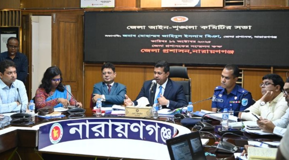 নারায়ণগঞ্জ জেলা প্রশাসকের সম্মেলন কক্ষে রোববার (১২ অক্টোবর) দুপুর ১২টায় জেলা আইন-শৃঙ্খলা কমিটির মাসিক সভা অনুষ্ঠিত হয়। সভায় বিভিন্ন রাজনৈতিক নেতৃবৃন্দ এবং প্রশাসনের কর্মকর্তারা জেলার বিভিন্ন সমস্যা তুলে ধরেন।