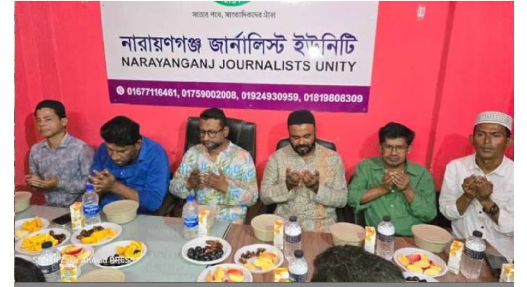 পবিত্র মাহে রমজান উপলক্ষে গণমাধ্যমকর্মীদের সংগঠন ‘নারায়ণগঞ্জ জার্নালিস্ট ইউনিটি’র উদ্যোগে ইফতার মাহফিল ও দোয়া আয়োজন হয়েছে। শুক্রবার (৬ মার্চ) সন্ধ্যায় শহরের চাষাঢ়ায় সংগঠনটির অস্থায়ী কার্যালয়ে ইফতার ও দোয়া আয়োজন করা হয়।