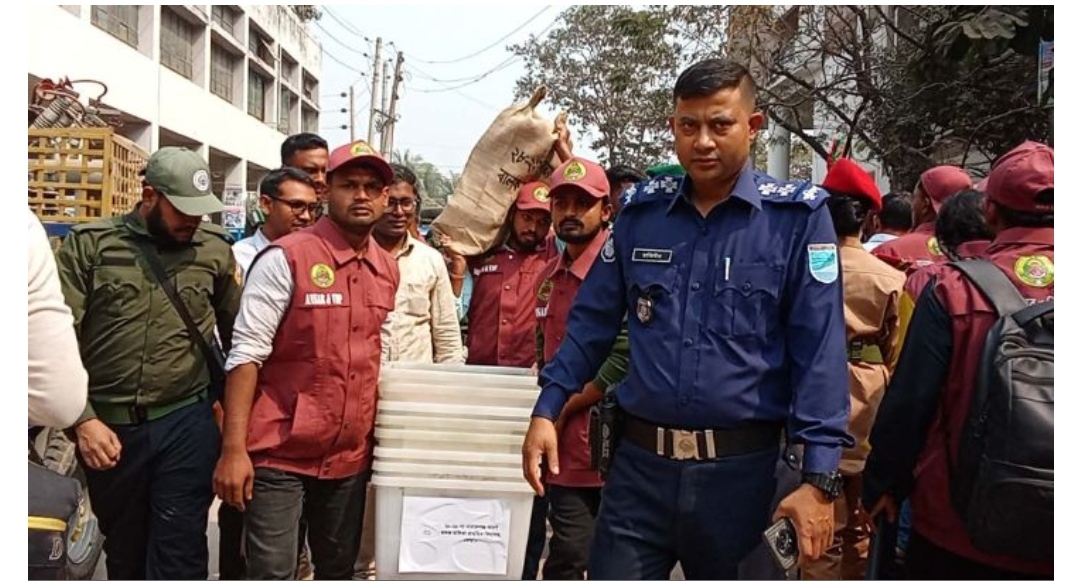নির্বাচনি সরঞ্জাম কঠোর নিরাপত্তায় ভোটকেন্দ্রে পৌঁছেছে