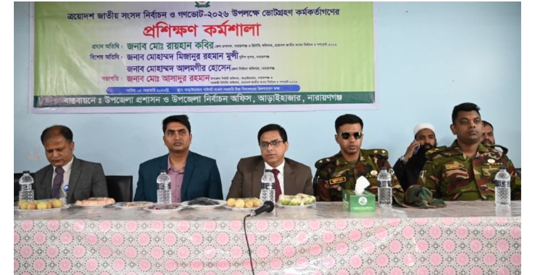 এদিকে, নির্বাচনী কর্মকর্তাদের জন্য একদিনব্যাপী প্রশিক্ষণ কর্মশালা অনুষ্ঠিত হয়েছে। পাইলট মডেল সরকারি উচ্চ বিদ্যালয়ের মিলনায়তনে অনুষ্ঠিত এই কর্মশালায় জেলা প্রশাসক প্রধান অতিথি হিসেবে উপস্থিত ছিলেন। বিশেষ অতিথি ছিলেন নারায়ণগঞ্জ পুলিশ সুপার মোহাম্মদ মিজানুর রহমান মুন্সী এবং জেলা নির্বাচন কর্মকর্তা মোহাম্মদ আলমগীর হোসেন।