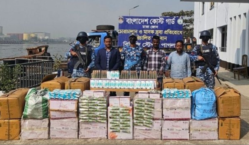 ফতুল্লায় শুল্ক ও কর ফাঁকি দিয়ে আনা বিপুল পরিমাণ ভারতীয় কসমেটিকসসহ দুই পাচারকারীকে গ্রেপ্তার করেছে বাংলাদেশ কোস্ট গার্ড। জব্দ করা পণ্যের আনুমানিক বাজারমূল্য প্রায় ২৯ লাখ টাকা।