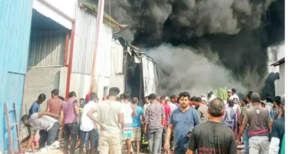 বন্দরে কর্কশিট তৈরির কারখানার গোডাউনে ভয়াবহ আগুন