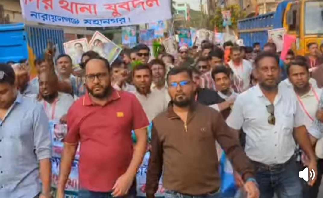 নারায়ণগঞ্জ- ৫ আসনে বিএনপির মনোনীত সংসদ সদস্য প্রার্থী মাসুদুজ্জামান মাসুদের নির্বাচনী জনসভাকে সফল করতে নারায়ণগঞ্জ সদর থানা যুবদল নেতা রাফি উদ্দিন রিয়াদ ও সাইফুল ইসলাম আপনের নেতৃত্বে যুবদলের নেতাকর্মীদের বিশাল শোডাউন করেছে।