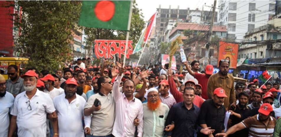 এর আগে এদিন দুপুর ২ টা থেকেই নারায়ণগঞ্জের বিভিন্ন এলাকা থেকে নেতাকর্মীরা একের পর এক মিছিল নিয়ে শহরের মন্ডলপাড়া এলাকায় জড়ো হতে থাকেন। বিভিন্ন এলাকায় খন্ড খন্ড মিছিল আসতে আসতে এ পর্যায়ে বিশাল জনসমাবেশে পরিণত হয়।