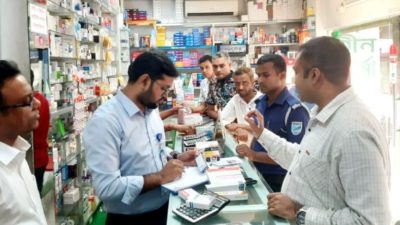 শহরের আমলাপাড়া এলাকায় তিনটি ফার্মেসিকে মোট ২৫ হাজার টাকা জরিমানা