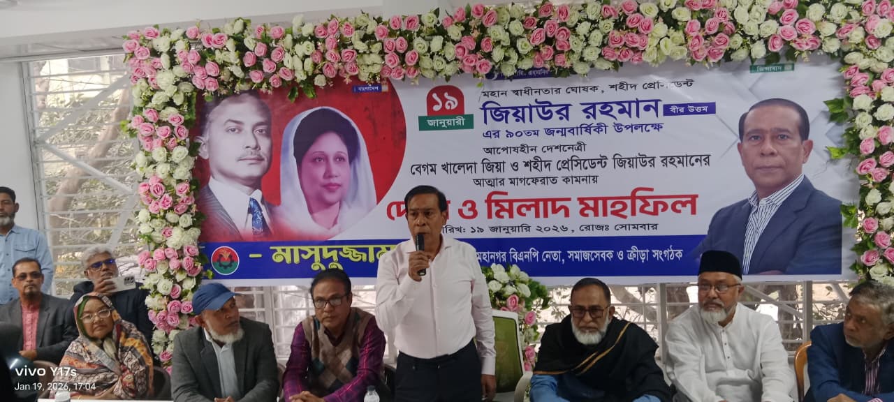 শহীদ জিয়াউর রহমানের জন্মবার্ষিকী ও বেগম খালেদা জিয়ার আত্মার মাগফিরাত কামনায় মাসুদুজ্জামানের দোয়া