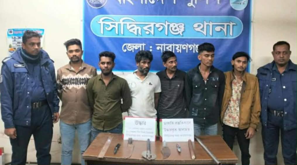 গ্রেপ্তাররা হলো মো. মহিন (২৯), মো. সজিব (২৮), মো. রনি (৩০), মো. বাবু (৩০), মো. হাসান (২০), ইমন (২৫), শামীম (৩৩) ও জসিম (৩৮)। তাদের অধিকাংশই সিদ্ধিরগঞ্জের বিভিন্ন এলাকার বাসিন্দা।
