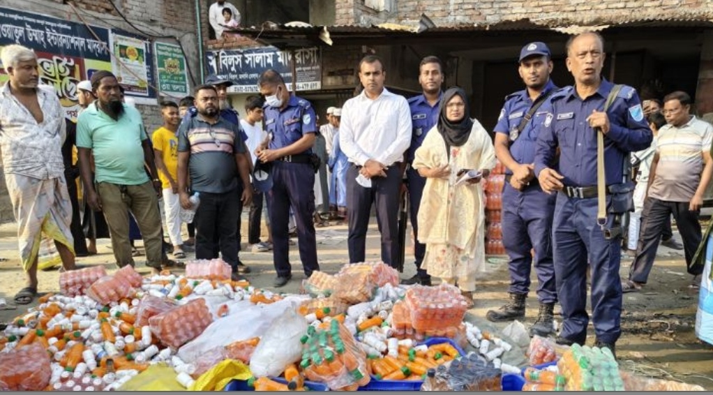 সিদ্ধিরগঞ্জে মল্লিক ফুট কারখানায় অভিযান,৪৬০ কার্টন খাদ্যপন্য জব্দ